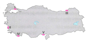 Aşağıdaki haritada bazı kıyılar numaralandırılarak gösterilmiştir.