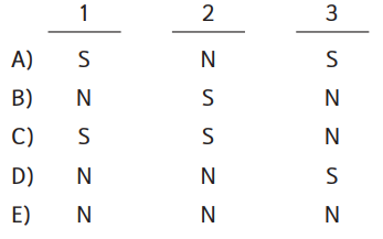 Özdeş mıknatıslar tavana bağlı iplerle asıldığında şekildeki gibi dengede durduğuna göre, 1, 2, 3 numaralı kutuplar aşağıdakilerden hangisi olabilir?