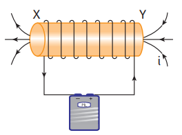 Şekilde görülen elektromıknatıs; demir çubuğa, dışı yalıtılmış iletken tel bağlanarak, üzerinden akım