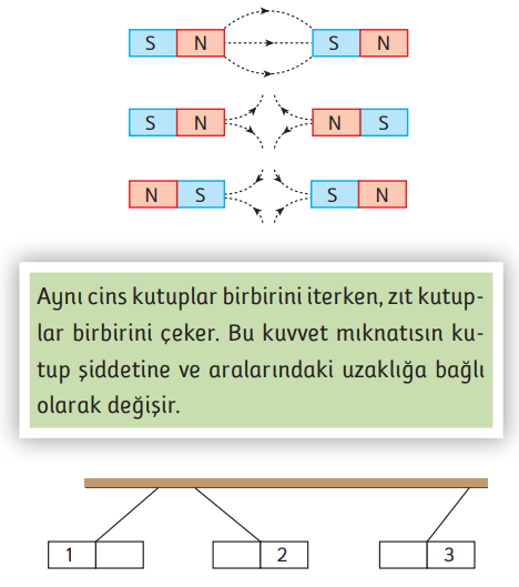 Mıknatıslar arasında oluşan itme-çekme kuvveti kutupların etkileşimine bağlıdır.