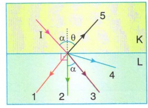 Tek renkli I ışını , ışığı kırma indisleri farklı, saydam K ve L ortamlarına şekildeki gibi gönderiliyor.