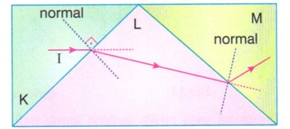I ışık ışınının K, L, M ortamlarındaki ortalama hızları sırasıyla vK, vL ve vM olduğuna göre, bunlar arasındaki ilişki nasıldır?