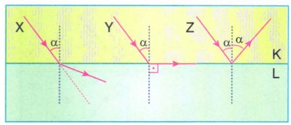Tek renkli X, Y, Z ışık ışınlarının saydam K ve L ortamlarında izlediği yol şekildeki gibidir.