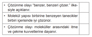 • Bir maddenin başka bir madde içerisinde çözünebilmesi için moleküler yapılarının benzer olması