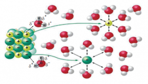 Şekilde NaCl kristalinin suda çözünmesi gösterilmiştir.