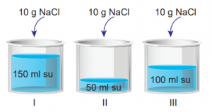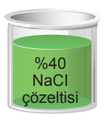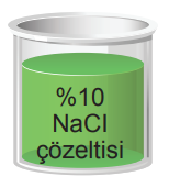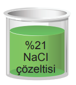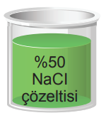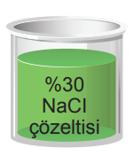 25°C'ta şekildeki kaplara belirtilen miktarlarda NaCl tuzu ilave edilerek çözelti hazırlanıyor.
