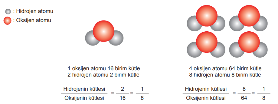 2. Bir bileşiği oluşturan elementlerin kütleleri arasında sabit bir oran vardır.