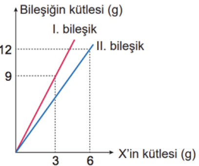 X ve Y elementlerinden oluşan iki bileşikte X ve Y elementlerinin, kütlece birleşme oranları grafikte verilmiştir.