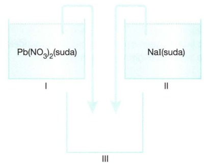 I. ve II. kaplarda bulunan çözeltiler III. kaba aktarıldıklarında PbI2 katısı ve NaNO3 çözeltisini oluşturuyorlar