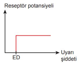 Uyaran karşısında reseptörlerde meydana gelen elektriksel değişime “Reseptör Potansiyeli” denir. Reseptör potansiyelinin oluşabilmesi için uyaran şiddetinin belli bir değerde olması gerekir. Bu değere “Eşik Değer” (ED) denir. Eşik değerden başlayarak uyaran şiddeti artarsa reseptör potansiyeli de artar.