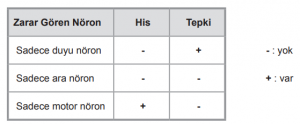 İnsanda bir nöron zarar gördüğünde ortaya çıkacak durumlar tabloda verilmiştir.