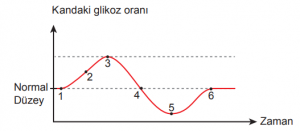 Bu grafiğe göre numaralı bölgelerden hangilerinde insülinin kandaki oranı eşik değer üzerinde bulunmaz?