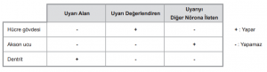 Bir nöronda bulunan bazı yapıların görevleri tabloda verilmiştir.