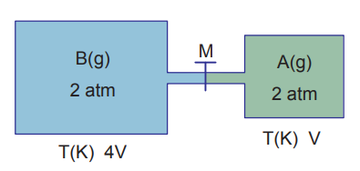Yukarıda verilen sistemde musluk açılıp sıcaklık 2T(K)’ye yükseltilirse son basınç kaç atm olur?
