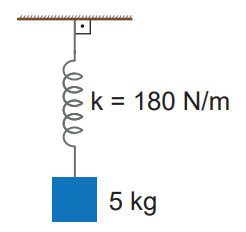 Yay sabiti 180 N/m olan yayın ucuna 5 kg kütleli bir cisim asılarak yay sarkacı oluşturuluyor.
