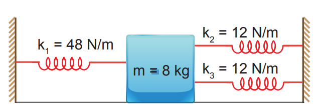 Yay sabitleri şekildeki gibi verilen yayların arasına 8 kg kütleli cisim bağlanarak sürtünmesiz sistemde basit harmonik hareket yaptırılıyor.