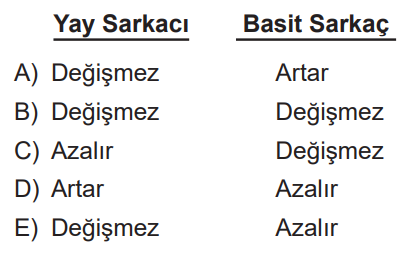 Yay sabiti k olan yay sarkacı ve ip uzunluğu l olan basit sarkaçtan oluşturulan sistemler yerçekimi ivmesinin daha büyük olduğu bir gezegene götürülürse periyotları nasıl değişir?
