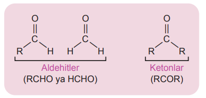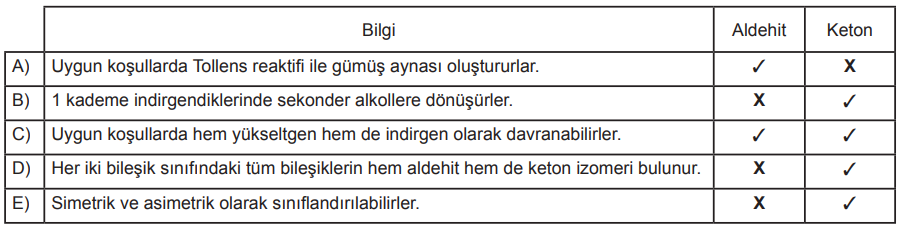 Aldehit ve ketonlarla ilgili tabloda verilen bilgiler için “