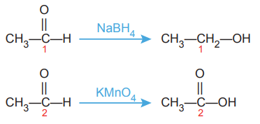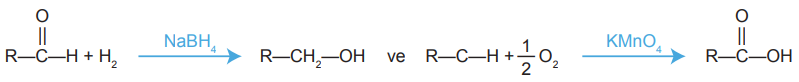 II. Aldehitler yükseltgendiklerinde karboksilik asit, indirgendiklerinde primer alkole dönüşürler.