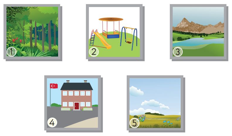 Öğretmen öğrencilerine iki farklı çevreye ait numaralandırdığı resimleri göstermiştir.