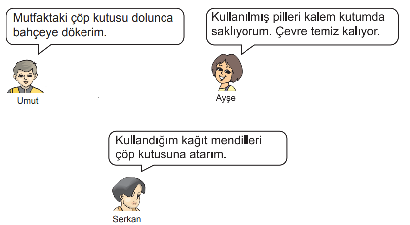 Yukarıdaki öğrencilerden hangilerinin söyledikleri davranışlar çevre sağlığı için uygundur?