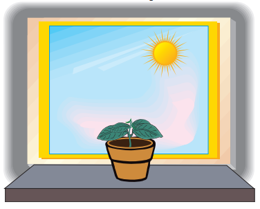 Elif saksıda yetişen menekşe bitkisini, güneş ışığı ve hava alan bir pencere önüne şekildeki gibi koymuştur. Bu bitkiyi belirli bir süre düzenli olarak sulamıştır.