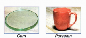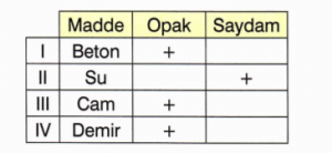 Tabloda bazı maddeler opak ve saydam olmalarına göre “+” ile gösterilmiştir.