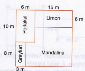 Verilen uzunluklara göre mandalina ağacı dikili bölgenin çevre uzunluğu kaç metredir?