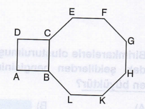 Tüm kenar uzunlukları birbirine eşit olan kare ve sekizgen bir kenarları üst üste gelecek şekilde yerleştirildiğinde elde edilen geometrik şeklin çevre uzunluğu 720 cm’dir.
