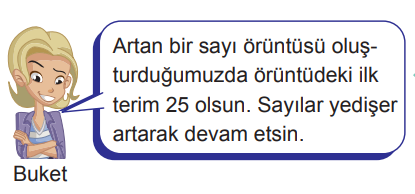 İlk terimi 56 olan, 7 azalarak devam eden sayı örüntüsünün ilk 5 terimi aşağıdakilerden hangisidir?