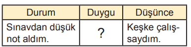 Bu tabloda “?” ile belirtilen bölüme aşağıdaki duygulardan hangisi yazılamaz?