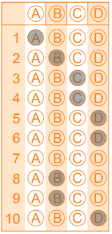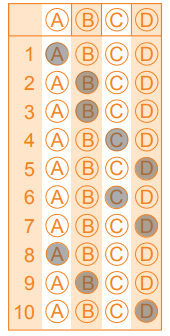 Aşağıda çoktan seçmeli 10 sorudan oluşan bir sınavdaki soruların doğru cevapları verilmiştir.