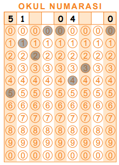 Kaan aşağıdaki optik forma okul numarasını kodlarken bazı sütunlarda rakam yazmayı, bir sütunda ise hem rakam yazmayı hem de bu sütuna yazması gereken rakama karşılık gelen sayının bulunduğu daireyi doldurmayı unutmuştur.