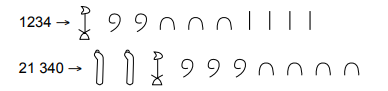Aşağıda tablodaki semboller kullanılarak 1234 ve 21 340 sayılarının gösterimi verilmiştir.