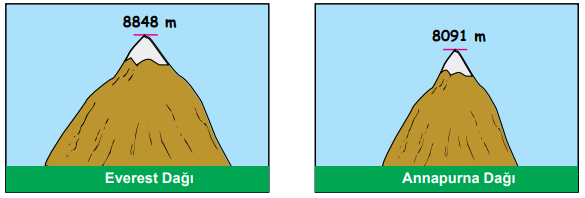 Aşağıdaki görsellerde Everest ve Annapurna Dağları’nın zirve noktalarının deniz seviyesine göre yükseklikleri verilmiştir.