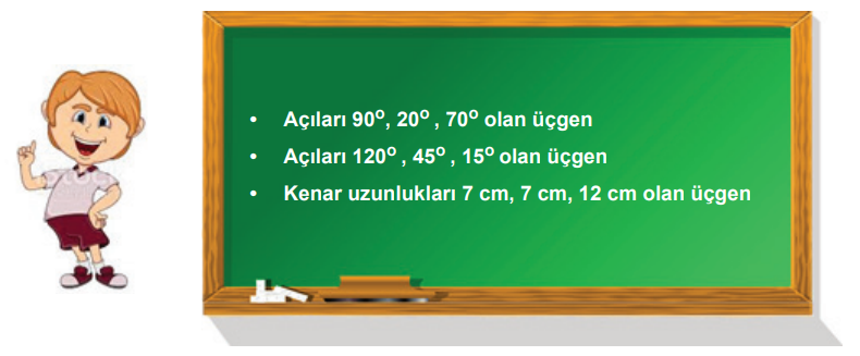 Aşağıdaki üçgenlerden hangisi tahtada elemanları verilen üçgenlerden biri değildir?