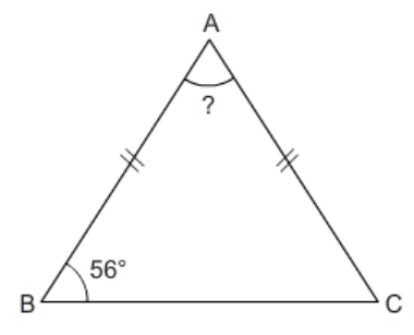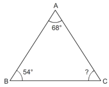 Yukarıdaki ABC üçgende B açısının ölçüsü; A açısının ölçüsünden 6° fazla, C açısının ölçüsünden ise 6° azdır.