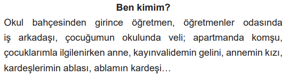 Yukarıda verilen bilgiye göre farklı rollerimizin olmasında,