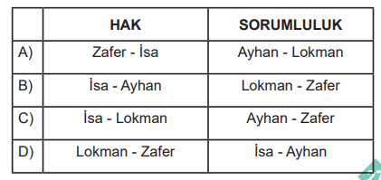 Yukarıdaki görsellerde uçurtma uçuran çocukların söyledikleri hak ve sorumluluk şeklinde ayrılmak istense doğru seçenek aşağıdakilerden hangisi olur?