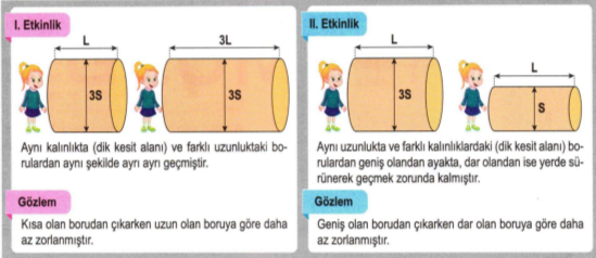 Aynı maddeden yapılmış borular ile yapılan etkinlik ve gözlemlere göre aşağıdaki yorumlardan hangisinin yanlış olduğu söylenebilir?
