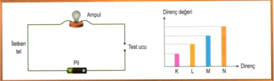 M. "Telin yapıldığı maddenin iletkenlik özelliği arttıkça direnç azalır." bilgisinin doğruluğunu ispatlamak