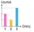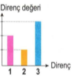 Test uçlarına grafikte verilen dirençler ayrı ayrı bağlanıyor ve ampul parlaklıkları yaslanıyor.