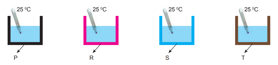 Kağan Fen Bilimleri dersi proje ödevi için bir termos tasarlayacaktır. Termos yapımında P, R, S ve T yalıtım malzemelerinden hangisini kullanacağına karar vermek için aşağıdaki düzünekleri oluşturmuştur.