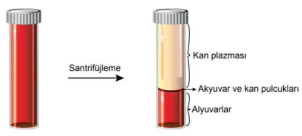 Sağlıklı bir insanın kanının santrifüjlenmesi sonucu oluşan tabakalar şekildeki gibidir.