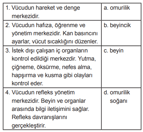 Merkezi sinir sistemi organları ve görevlerinin doğru eşleştirilmesi hangi seçenekte verilmiştir?