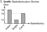 Buna göre üç basketbolcunun bu maçtaki skorlarını gösteren sütun grafiği aşağıdakilerden hangisidir?