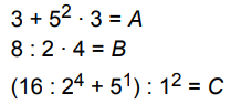 Yukarıda verilen eşitliklere göre, A : (B – C : 2) işleminin sonucu kaçtır?