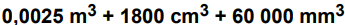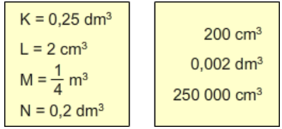 Yukarıdaki kartlarda bazı hacim ölçümleri verilmiştir.