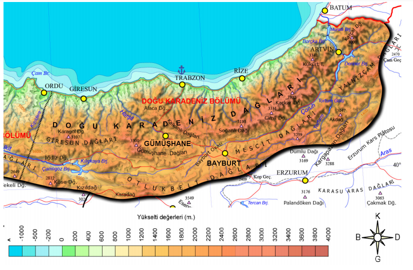 Bayburt’un yeryüzü şekillerinin daha dağlık ve engebeli olmasıyla | |