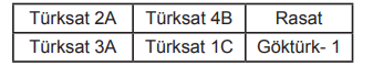 Tabloda Türkiye’ye ait olan bazı uyduların isimleri verilmiştir.